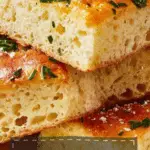 The best part of serving focaccia is getting creative with toppings. A drizzle of extra virgin olive oil and a sprinkle of flaky sea salt highlight the bread’s natural flavor perfectly. Fresh or dried rosemary, thyme, or even a few cherry tomato halves pressed into the dough before baking add gorgeous color and bursts of herbal aroma.
