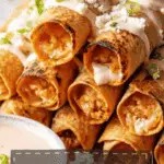 While the taquitos bake, whisk together ranch dressing with 2 to 3 tablespoons of buffalo wing sauce to create a flavorful buffalo ranch dip. It’s the perfect creamy complement to the spicy, crunchy taquitos that will keep everyone coming back for more.