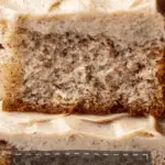 - Frost the Cake: Spread the peanut butter frosting evenly over the cooled banana cake. For an extra touch, microwave 2 tablespoons of peanut butter until melted and swirl it over the top of the frosting using a spoon or spatula for decorative effect.