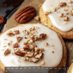 7. Glaze and Garnish: Dip cooled cookies into maple glaze or spoon glaze on top evenly. Sprinkle with additional chopped pecans. Let icing set about 20 minutes before storing or serving.