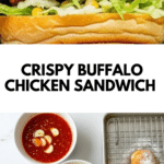 This Crispy Buffalo Chicken Sandwich recipe offers a healthier homemade alternative to fast food favorites. Featuring tender, marinated and breaded chicken breasts baked to crispy perfection, complemented with a zesty grinder slaw and creamy homemade ranch dressing. The sandwich is finished with a flavorful buffalo sauce and toasted buns, making it a satisfying and flavorful meal ideal for lunch or dinner.