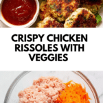 These Chicken Rissoles are flavorful, tender patties made with ground chicken, grated vegetables, cheese, and breadcrumbs. Pan-fried to a golden perfection and kept warm in the oven, they’re perfect as a snack or main dish served with ketchup for dipping. With a good mix of protein and veggies, they’re a tasty and satisfying option for the whole family.