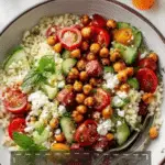 This fresh Mediterranean Cherry Tomato Couscous Salad combines both raw and slow-roasted cherry tomatoes with pearl couscous, feta cheese, smoked paprika roasted chickpeas, crisp cucumbers, and fragrant herbs. The dish is perfect for a picnic, lunch, or light dinner, offering a vibrant, satisfying mix of textures and bright, zesty flavors. Roasting the tomatoes ahead of time intensifies their sweetness and makes the salad quick to assemble.