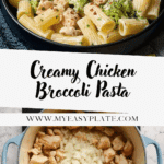 A creamy and comforting Chicken Broccoli Pasta dish featuring tender chicken breast, fresh broccoli florets, and rigatoni pasta tossed in a flavorful garlic-thyme cream sauce, perfect for a hearty family dinner in just 30 minutes.