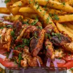 This recipe features straightforward ingredients that come together beautifully to offer bold taste, delightful textures, and colorful presentation. Each item plays a key role — from the spices that infuse the chicken with warm, aromatic flavor to the crisp fries that add satisfying texture, and of course the cooling garlic yoghurt sauce that ties everything together.