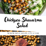 A vibrant and flavorful Chickpea Shawarma Salad featuring spiced chickpeas sautéed to perfection, served over massaged kale and fresh vegetables, topped with a creamy tahini sauce. This wholesome dish is quick to prepare, perfect for a nutritious lunch or dinner, and can be enjoyed with pita bread or hummus.