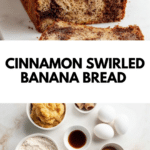 This Cinnamon Swirled Banana Bread features moist, tender banana bread infused with rich swirls of buttery cinnamon sugar throughout. Perfectly balanced with the sweetness of ripe bananas and warm spice, it’s an irresistible dessert or snack that yields 8-10 generous servings.