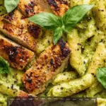 Creamy Chicken Pesto Pasta features tender bite-sized chicken breast pieces and perfectly cooked penne pasta tossed in a luscious, creamy pesto sauce enriched with Parmesan and mozzarella cheeses. This quick and comforting Italian-inspired dish is ready in just 30 minutes, making it perfect for a satisfying weeknight dinner or a flavorful meal any day.