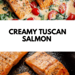 This Creamy Tuscan Salmon recipe features perfectly pan-seared salmon fillets served in a rich and flavorful creamy Parmesan sauce with garlic, cherry tomatoes, spinach, and fresh basil. Quick and easy to prepare, this restaurant-quality meal is perfect for a satisfying summer dinner, ready in just 30 minutes.