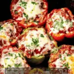 Close the lid and cook the peppers on LOW for 5-6 hours or on HIGH for 2-3 hours. The slow cooker will work its magic, tenderizing the peppers and infusing the filling with the tomato sauce’s savory, herbal goodness. Once cooked through, if you like, sprinkle shredded mozzarella over the peppers and cover again for about 5 minutes to let the cheese melt into a gooey, irresistible topping. Serve by spooning some of the savory sauce from the bottom of the crockpot onto your plate for extra flavor and moisture.
