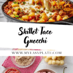 This Easy Skillet Taco Gnocchi is a flavorful and quick weeknight dinner that combines tender potato gnocchi with seasoned ground beef, spicy tomatoes, and melted Mexican cheese. With just six simple ingredients, it’s perfect for a family-friendly meal that’s ready in under 20 minutes.