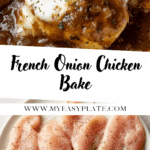 This French Onion Chicken recipe features tender, thinly sliced chicken breasts seared to a golden brown and smothered in a rich, savory French onion sauce topped with melted mozzarella cheese. The caramelized onions infused with herbs create a flavorful base that pairs perfectly with the juicy chicken. Prepared with simple ingredients and cooked using a stovetop-to-oven method, it’s a comforting and elegant dish perfect for weeknight dinners or special occasions.
