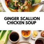 This Ginger Scallion Chicken Soup is a flavorful and nutritious 30-minute meal featuring tender shredded chicken, fresh ginger, scallions, shiitake mushrooms, and baby bok choy simmered in a savory chicken broth. Enhanced with soy sauce and toasted sesame oil, it’s garnished with chili crisp and sesame seeds for an extra burst of flavor, perfect for a comforting yet light lunch or dinner.