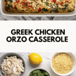 This Greek Chicken Casserole is a flavorful and hearty one-pan meal featuring tender shredded chicken, orzo pasta, fresh spinach, sundried tomatoes, kalamata olives, and tangy feta cheese. Infused with lemon zest and oregano, it offers a perfect Mediterranean-inspired dinner that’s easy to prepare and bakes to perfection in the oven.