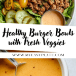 These Healthy Burger Bowls with Special Sauce are a nutritious twist on a classic burger, packed with fresh veggies and seasoned ground beef. Easy to prepare and Whole30 compliant, Paleo-friendly, and low carb, they make a perfect low-carb meal option that doesn’t sacrifice flavor. The homemade special sauce adds a tangy, savory finish that ties all the ingredients together beautifully.