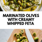 When you’re ready to enjoy, generously spoon the marinated olives over the whipped feta. This striking combination of creamy and savory, with vibrant herbal bursts and a hint of spice, is what makes this Marinated Olives with Whipped Feta Recipe stand out. Serve alongside your favorite breads, crackers, or fresh veggies and watch everyone dive right in.