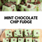 Mint chocolate chip fudge is a rich and creamy treat that blends the refreshing flavor of mint with sweet white chocolate and semi-sweet mini chocolate chips. Inspired by the classic ice cream flavor, this easy no-bake dessert is perfect for the holidays or any time you’re craving something minty and sweet.