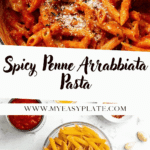 Penne all’Arrabbiata is a classic Italian spicy tomato pasta dish made with simple ingredients like garlic, chili, and crushed tomatoes, all tossed with penne pasta and finished with parmesan and fresh parsley. This flavorful dish comes together quickly, making it perfect for a comforting weeknight meal.