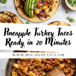 Delicious and flavorful Pineapple Turkey Tacos that come together in just 15 minutes. Perfect for a quick weeknight meal, these tacos feature lean ground turkey cooked with sweet pineapple and spicy homemade taco seasoning. Serve with your favorite taco shells and fresh toppings for a vibrant, gluten-free, and paleo-friendly dish everyone will love.