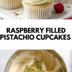 Delight in these Pistachio Cupcakes featuring a moist, buttery base studded with chopped pistachios, filled with tangy raspberry purée, and topped with creamy pistachio buttercream frosting. Each cupcake is beautifully decorated with crushed pistachios and fresh raspberries, perfect for special occasions or an indulgent treat.
