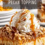 - Top with Pecans and Butter: Evenly distribute the chopped pecans over the cake mix layer. Drizzle melted butter over the pecans or place butter cubes on top to add richness and help the topping crisp up during baking.