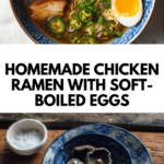 A comforting and easy homemade chicken ramen recipe featuring a savory broth infused with ginger and garlic, tender roasted chicken breasts, fresh scallions, soft-boiled eggs, and chewy ramen noodles. Inspired by traditional Japanese ramen, this dish comes together in under an hour, perfect for a satisfying weeknight meal.