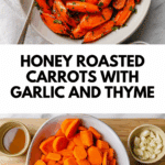 This Simple Honey Roasted Carrots recipe features tender, caramelized carrots roasted at 400°F with olive oil, honey, garlic, and thyme. Finished with fresh lemon juice and parsley, these flavorful carrots are perfect for holiday meals or cozy weeknight dinners.