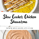 This Slow Cooker Chicken Shawarma recipe delivers juicy, tender chicken infused with bold Mediterranean spices. Marinated in a flavorful yogurt and spice blend, then slow-cooked with onions to enhance the taste, this dish is perfect served over yellow rice or stuffed into pita with a cooling cucumber yogurt sauce and fresh toppings.