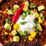 Elevate your chili experience by topping it with creamy vegan cheese or a dollop of vegan Greek yogurt for richness. Fresh parsley or cilantro adds a burst of herbal brightness, and slices of ripe avocado bring a luxurious creaminess that pairs wonderfully with the spice.