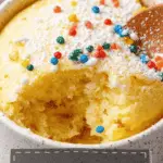 - Rest and Serve: Let the mug cake rest inside the microwave for 30 seconds after cooking. Then, top with additional sprinkles if desired, and enjoy your warm, moist vanilla mug cake directly from the mug.