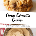 Carmelita Cookies combine the rich, buttery texture of oatmeal cookies with the gooey sweetness of caramel in every bite. These delightful treats feature a soft cookie exterior encasing melted caramel and chocolate chips, finished with a touch of sea salt for a perfect sweet-salty balance.