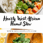 Thick, hearty, and delicious, this vegan West African Peanut Stew is made in one pot and ready in about 30 minutes, making it perfect for a nutritious weeknight meal. It features sweet potatoes, peanut butter, and a blend of spices, delivering authentic African flavors in a comforting stew.